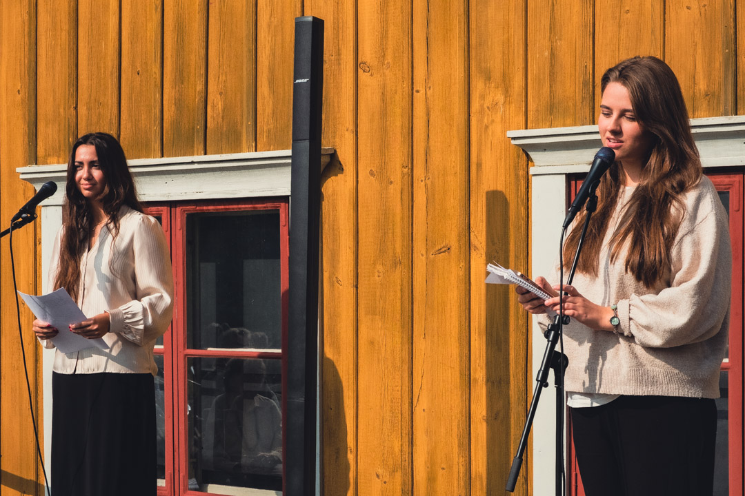 Gymnasisterna Kristina Jamil och Linnea Gråbacke gjorde en betraktelse över Wendela Hebbe och hennes betydelse som förebild och inspirationskälla för dagens tonåringar.