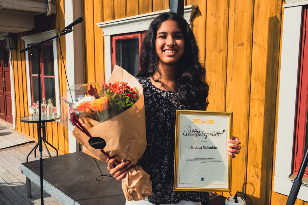 Hridaya Salunke, vinnare av Lilla Wendelapriset med skräcknovellen ”Traditionen”. Juryns motivering till priset: ”Det är en stark novell där skribenten skickligt, med undertext och parallellhistoria, lotsar läsaren fram emot en oväntad och obehaglig upplösning.”