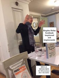 Birgitta Holm höll ett inspirerat och roligt föredrag utan manus om Helga Henschen och sin "mytobiografi" om henne. Helga Henschen är för oss i Södertälje bl a känd för sin fantasifulla Dafneskulptur i Lunagallerian.