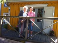 Carola Broms och dottern Susanne Broms kom på besök till lördagsvisningen i Wendelas Hus den 14 juni 2014. Ami tog emot och visade museet för Susanne. Mamma Carola, som hade svårt att gå i trappor,