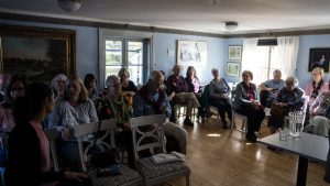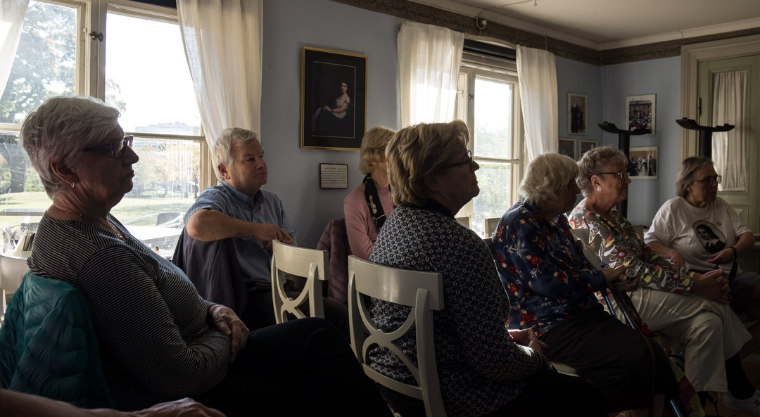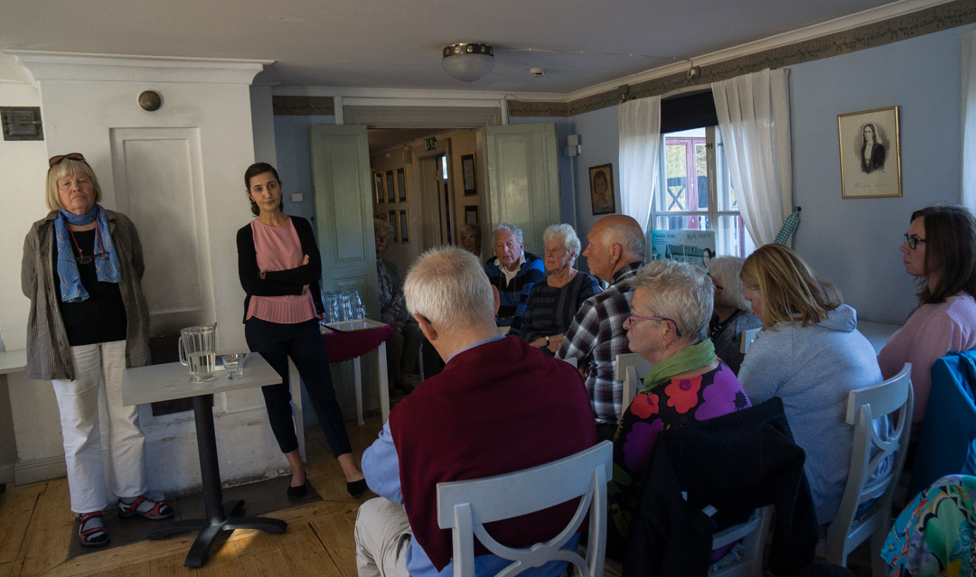 Negra Efendic berättar om sin bok inför en fascinerad publik i Wendela Hebbes Hus.