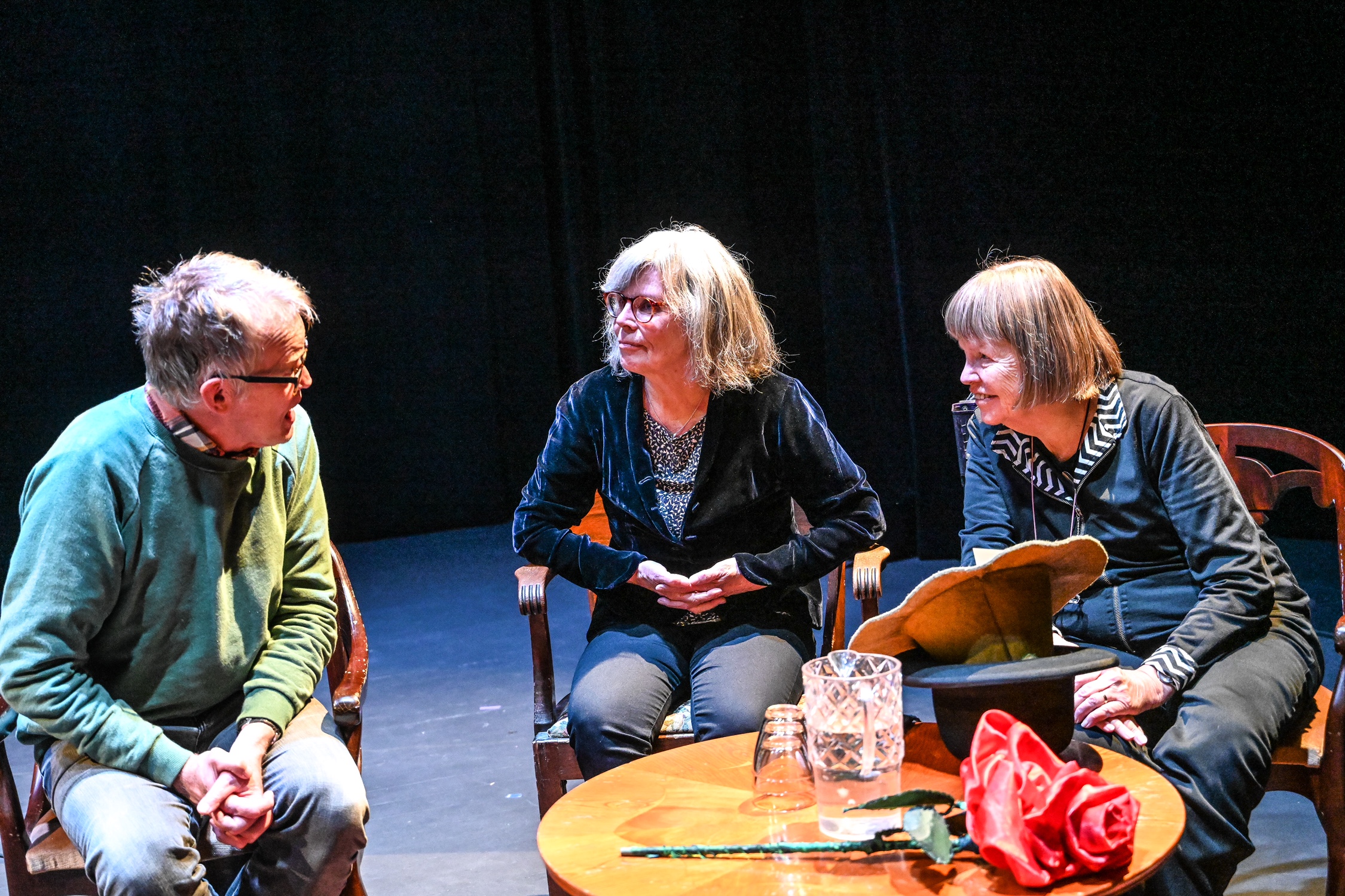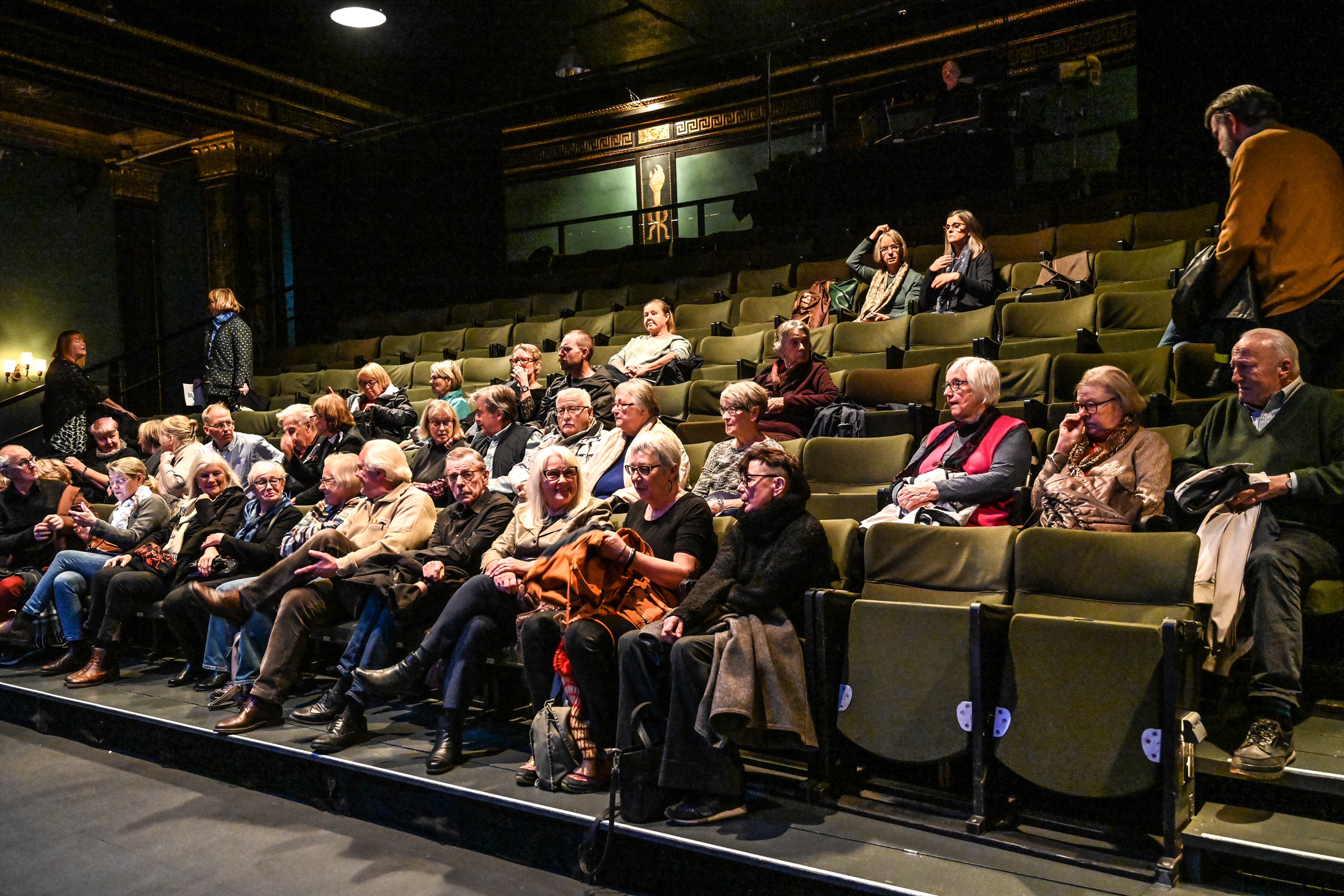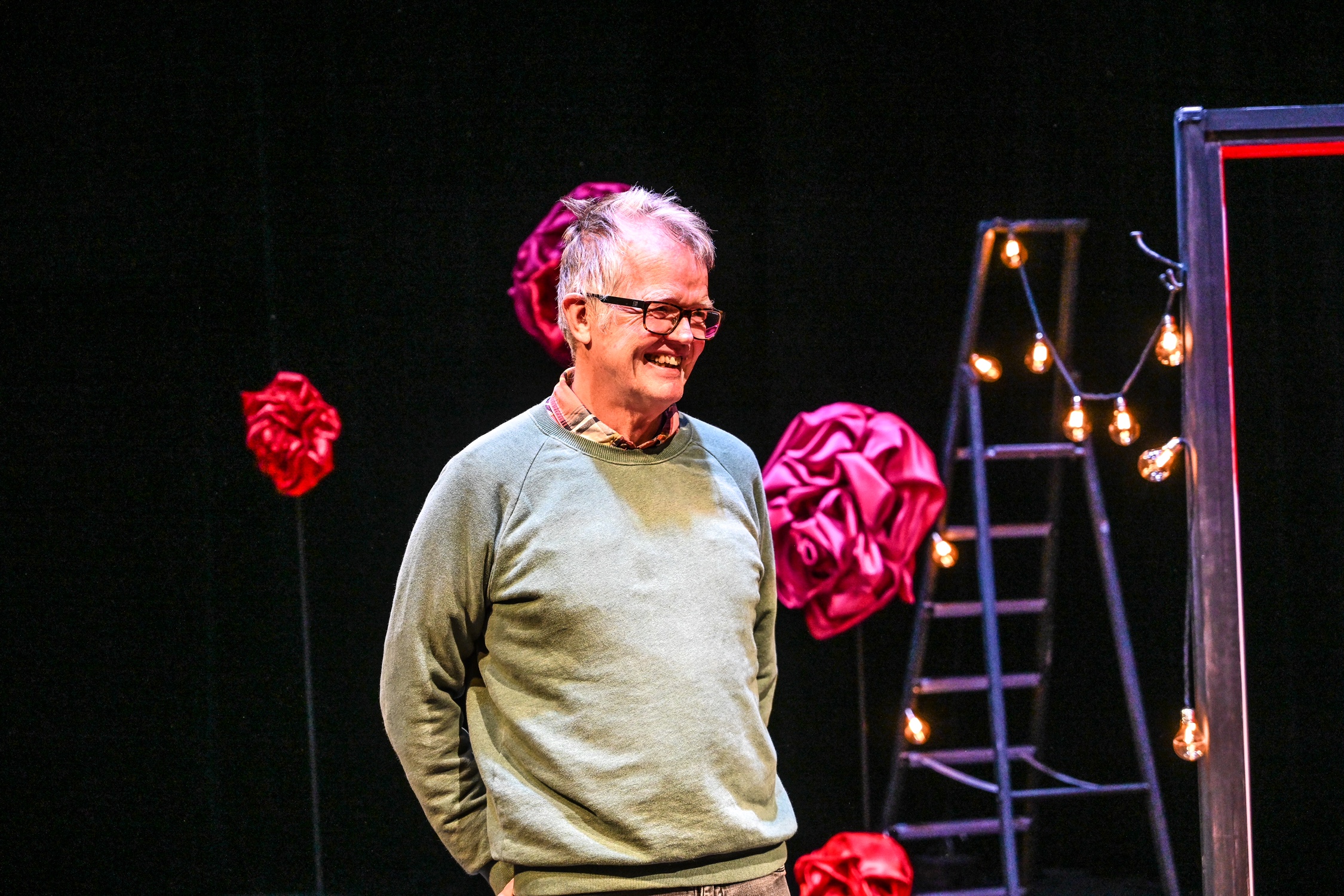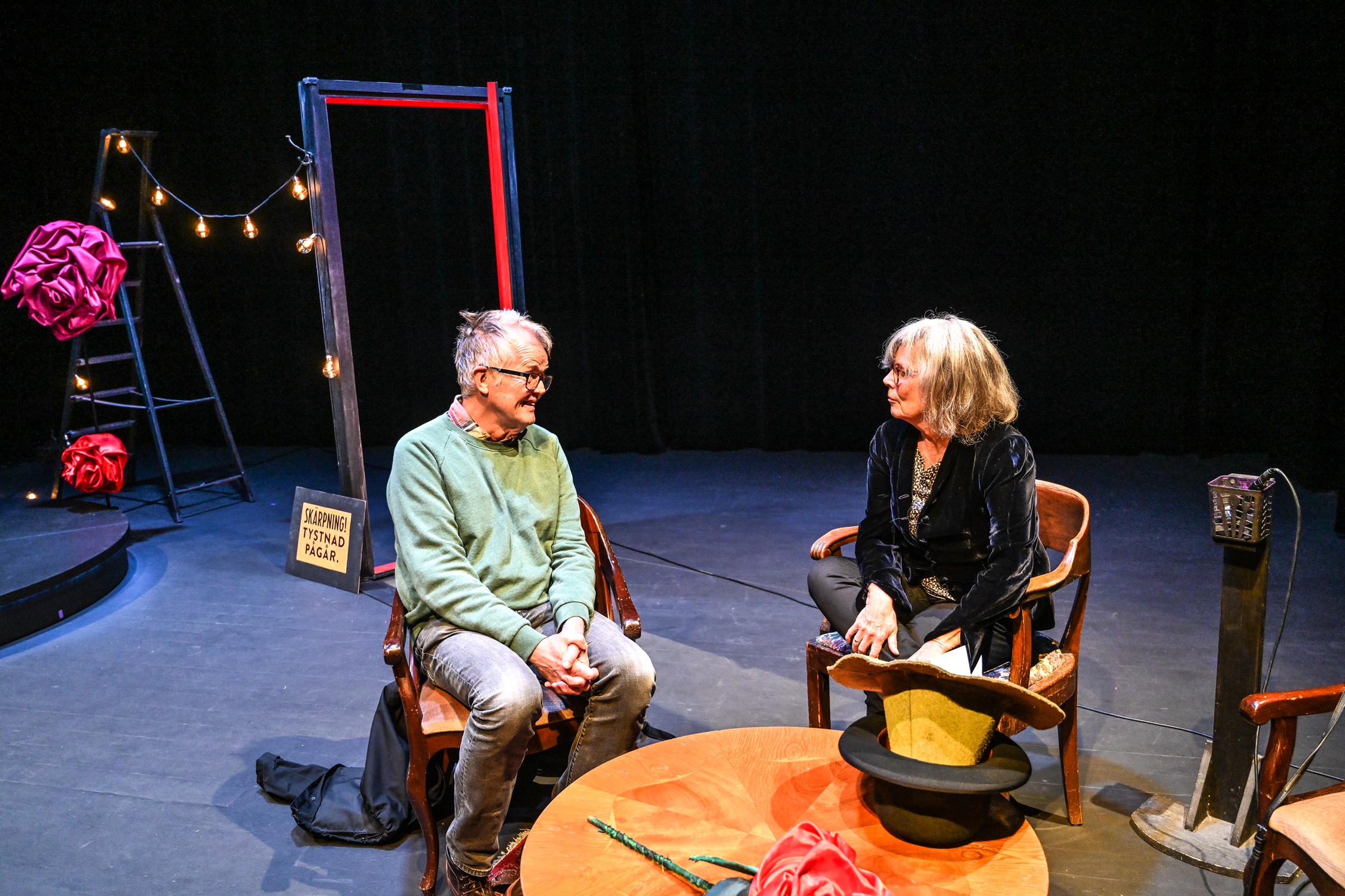 Gunnar Wetterberg i samtal med Ninne Olsson på Oktoberteaterns scen (Foto: Birger Svanteson)