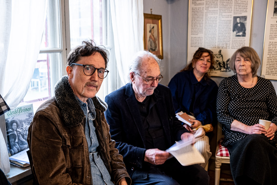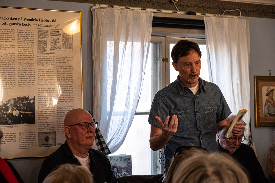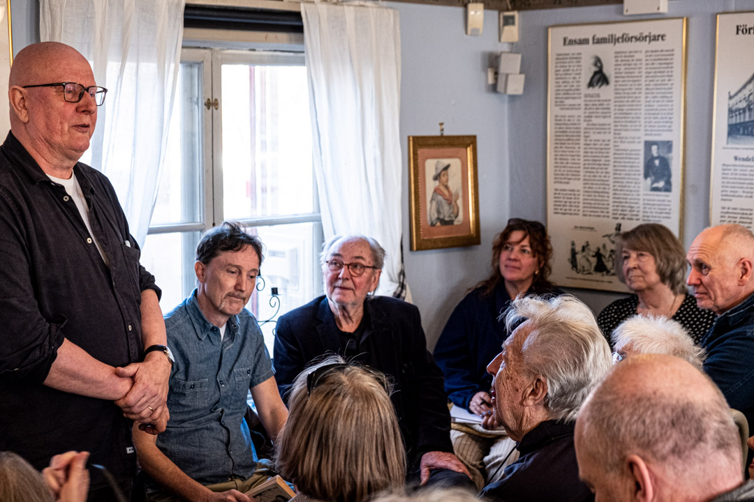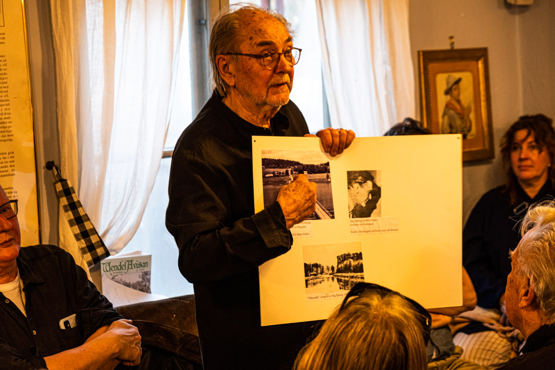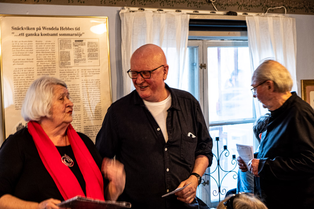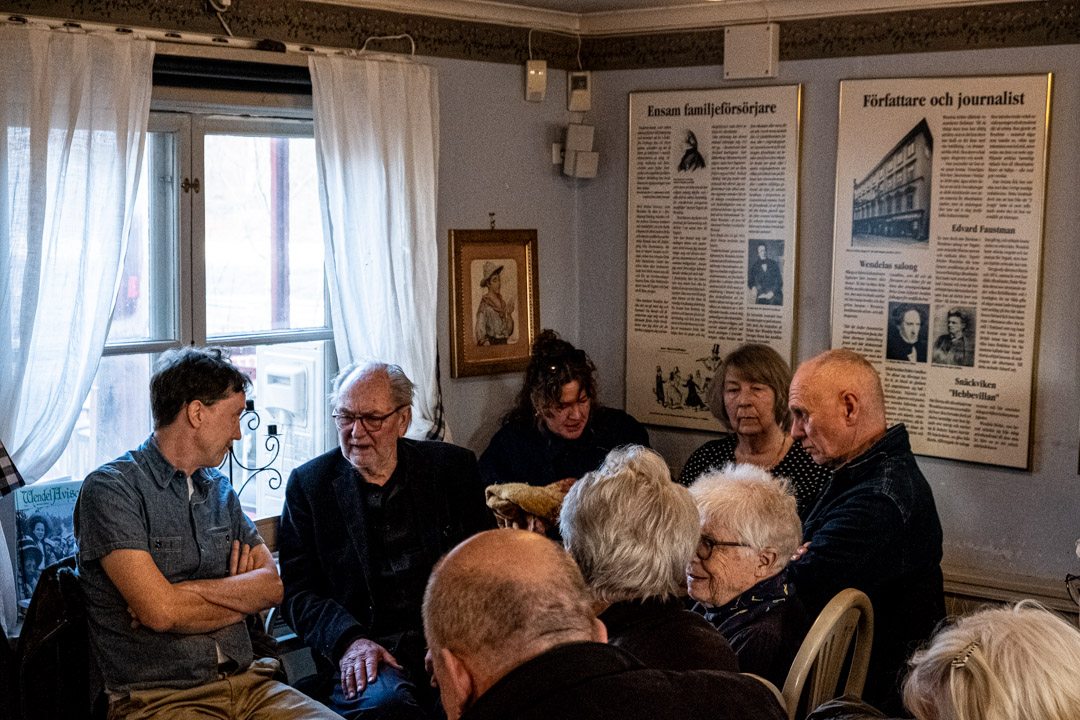 Här kommer, något försenat, bilder från evenemanget om Gunnar Ekelöf som ägde rum i Wendela Hebbes hus en eftermiddag i slutet av februari. Författaren Jesper Högström pratade om Gunnar Ekelöf utifrån sin nyutkomna och hyllade Ekelöf-biografi ”Minnet och rädslan”. Margareta Lithén läste några valda dikter och Lenny Clarhäll berättade om Gunnar Ekelöfs tid i Hölö, och om kampen för att öppna ett Ekelöf-museum där. Tillställningen leddes som vanligt med säker hand av Janne Lewenhagen.