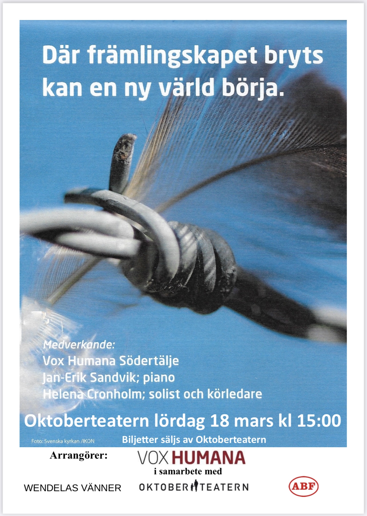 ”Där främlingskapet bryts kan en ny värld börja” hade sin premiär på Oktoberteatern 2014.