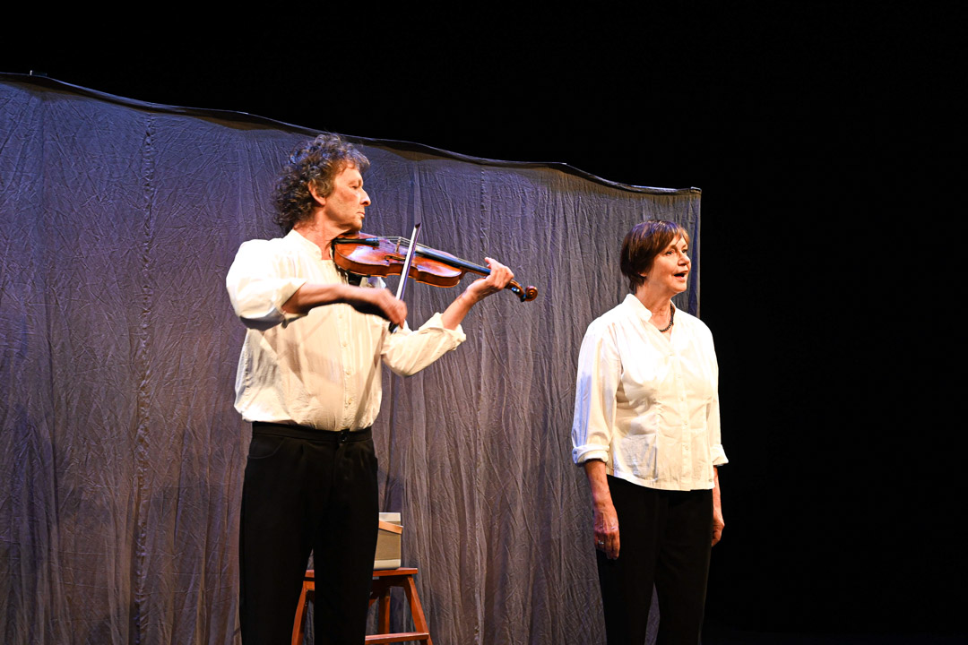 Bo Lindell och Ewa Carlsson från teatergruppen Musikteater 89 medverkade i föreställningen, som väckte många tankar och känslor.