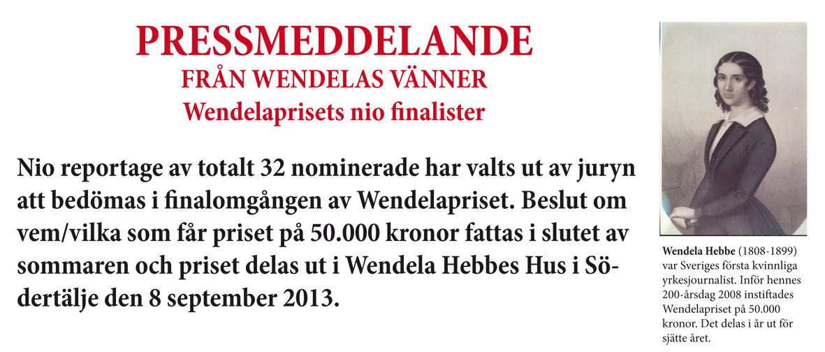 Nomineringar till Wendelapriset. Pressmeddelande Läs hela meddelandet här:Pressmedd nom 2013 Per Eric Mattsson2013-05-07T10:38:41+02:007 maj 2013| Dela detta inlägg på sociala medier! FacebookWhatsAppE-post